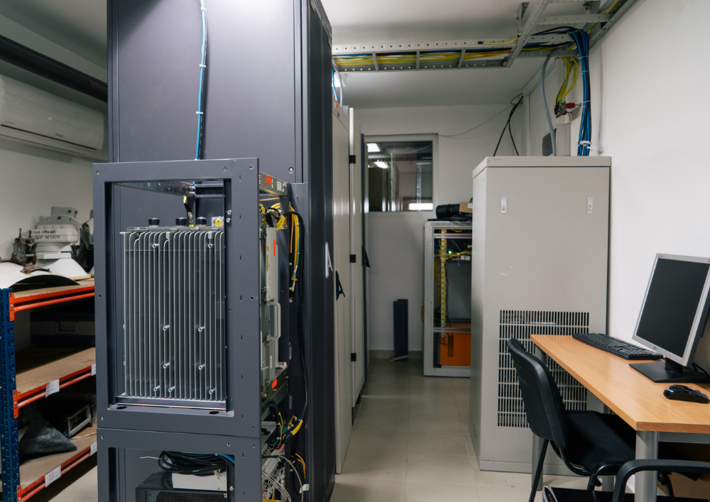 В залата е инсталирана учебно техническо оборудване, свързано с изучаването на работата на базови станции за мобилна комуникация: GSM, 3G, NMT. Техниката е дарение от Виваком. |