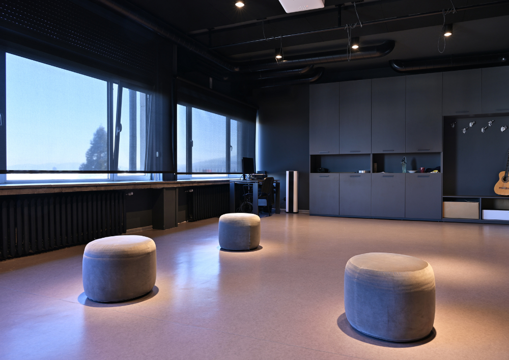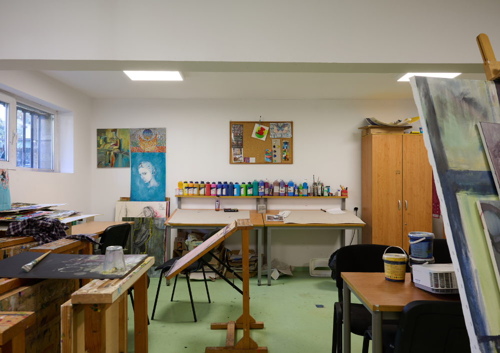 | Залата разполага с 15 места. Оборудвана е със стативи за рисуване. |