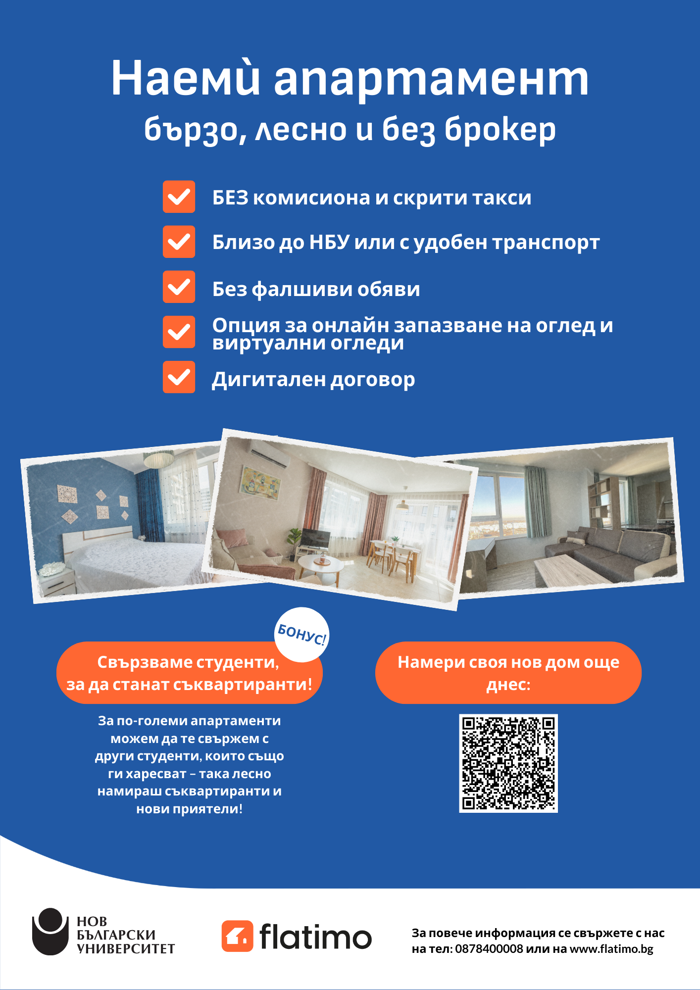 За допълнителна информация и търсене на подходящ имот за дългосрочно студентско настаняване: https://flatimo.bg/