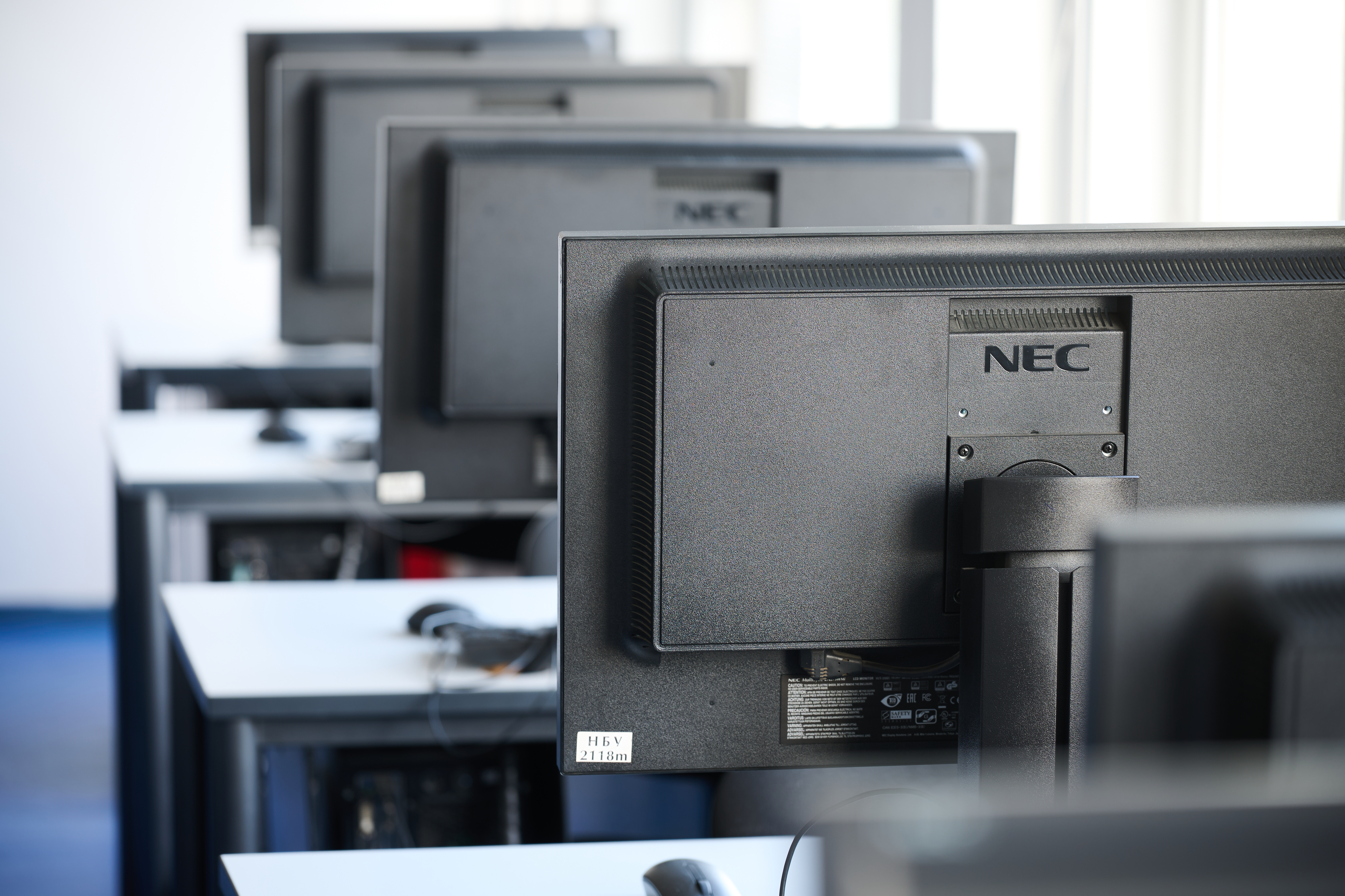 | Залата разполага с 50 места. Оборудвана е с интерактивна дъска, мултимедиен проектор, компютърни конфигурации Intel Core i3; MHZ: 3100; RAM:8192; HDD: 500 GB; ROM: DVD-RW; -монитор: Lenovo 22 със специализиран софтуер, дарени от инвестиционния посредник DeltaStock. |